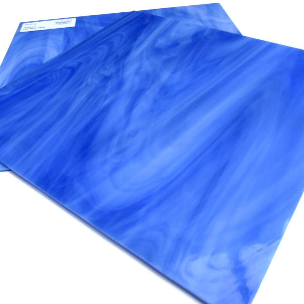 Light Blue and White Wispy Stained Glass Sheet, Semi-translucent