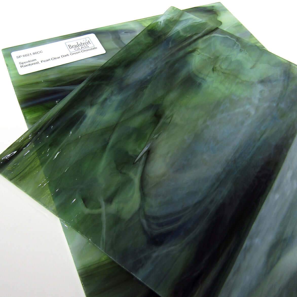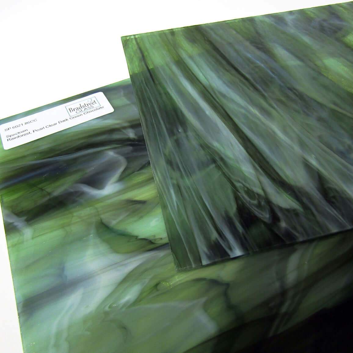Rainforest Pearl Opal Fusible White Clear Dark Green Chocolate 96 COE Stained Glass Sheet Oceanside SF6021.86CC